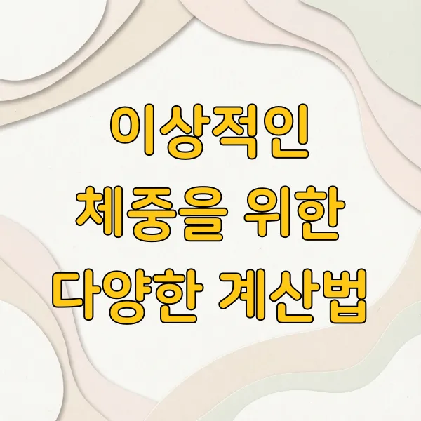 자신의 건강 상태를 파악하는 데 중요한 기준이 되는 적정 체중! 하지만 어떻게 계산해야 할지 막막하게 느껴질 수 있어요. 다양한 적정 체중 계산법을 알아보고, 자신에게 맞는 방법을 찾아 건강 관리에 활용해 보세요.